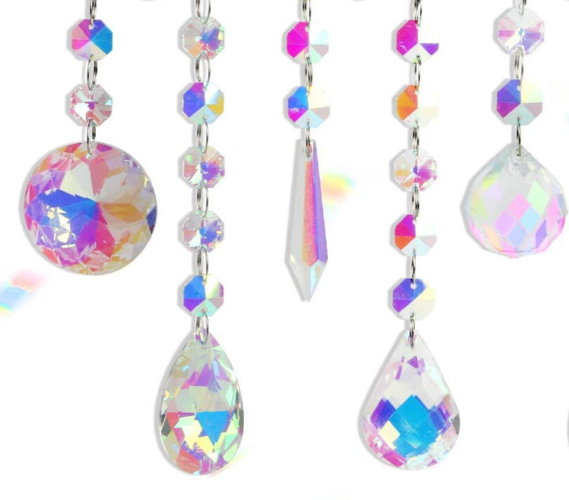 Glittering glass captures the sun's rays to turn any room into a multi-hued wonder. Different shapes and lengths available. |