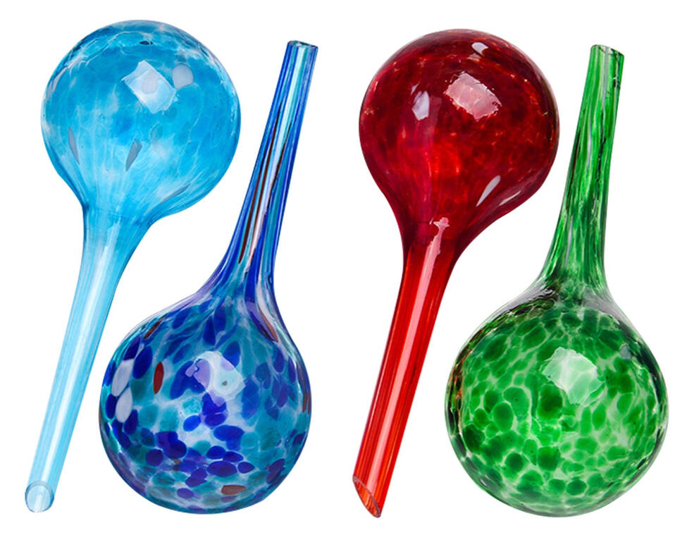 Refillable garden assistance that keeps plants hydrated over time. Simply fill the globe and stick into the soil. |